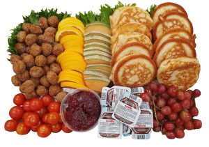 De levereras med exotiska frukter och man kan välja mellan potatissallad, potatisgratäng eller örtmarinerad pasta. Faten är perfekt bjudmat på student, födelsedagsfirande, bröllop, dop eller andra festliga tillfälle.