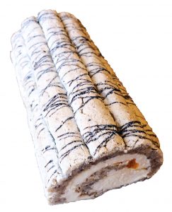 Budapeststubbe Socker, GRÄDDE, ÄGGVITA, HASSELNÖTTER, mandariner, veg. fett (palm, kokos), vegetabiliskt fett (raps), potatismjöl, SKUMMJÖLKSPULVER, vatten, fullhärdat vegetabiliskt fett (palmkärna), stabiliseringsmedel (E1414, E1422), kakao, VASSLEPULVER, Fullhärdat vegetabiliskt fett (kokos), majsstärkelse, emulgeringsmedel (E475, E471, E322, E492), salt, surhetsreglerande medel (E330, E500), vegetabiliskt fett (palm), förtjockningsmedel (E466, E412), MJÖLKPULVER, MJÖLKPROTEIN, aromer, antioxidationsmedel (E330), konserveringsmedel (E202), färgämnen (E160e, E101), vanillin, | Nötbotten, grädde och mandariner som rullas ihop och dekoreras med ripplad choklad. | 129 kr | ||