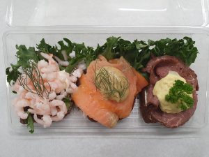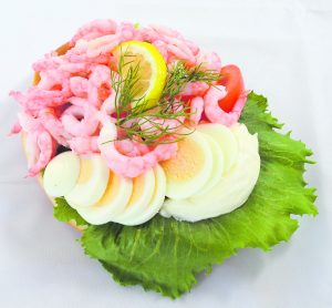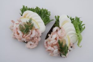 Smörrebröd med handskalade räkor 2p RÄKOR(Handskalade), ÄGG, vatten, MAYOFRAICHE(Svensk pressad rapsolja, crème fraiche (GRÄDDE, syrningskultur), vatten, ÄGG, socker, vinäger, salt, konserveringsmedel (E 202), ättikssprit, surhetsreglerande medel (E 330), SENAPSFRÖ, stabiliseringsmedel (E 412, E 415), kryddor), Sallad, citron, VETEMJÖL(FULLKORN), Klippta RÅGKÄRNOR, VETEMJÖL, solroskärnor, RÅGMJÖL(Fullkorn), surdeg av RÅG, VETEGLUTEN, dill, salt, jäst, färgämnen (E150a), maltmjöl (VETE), maltodextrin. | Grovt bröd med goda frö i, smör, handskalade räkor, ägg sallad, tomat, majofraiche, citon och dill | 119 kr |